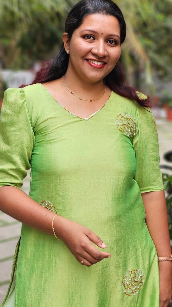 Aura PistaGreen Vichitra Silk ethnic Kurti