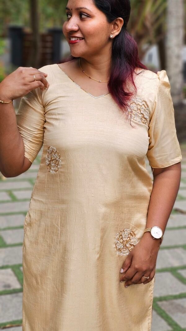 Aura Cream Vichitra Silk ethnic Kurti
