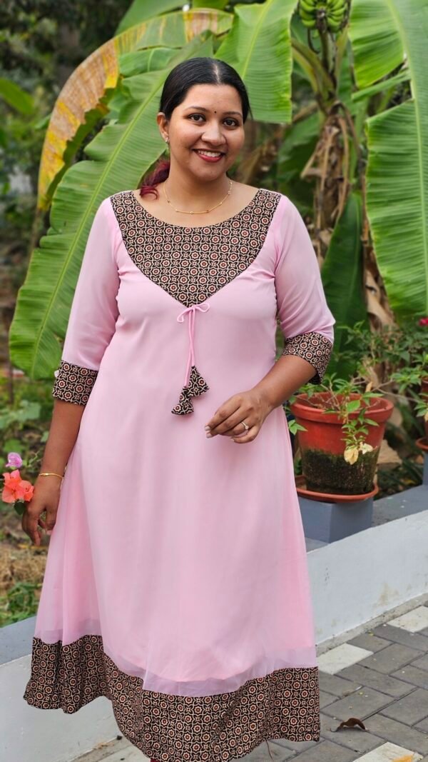 ‘Blossoms’ Ajrakh Yoke Light Pink Georgette Kurti