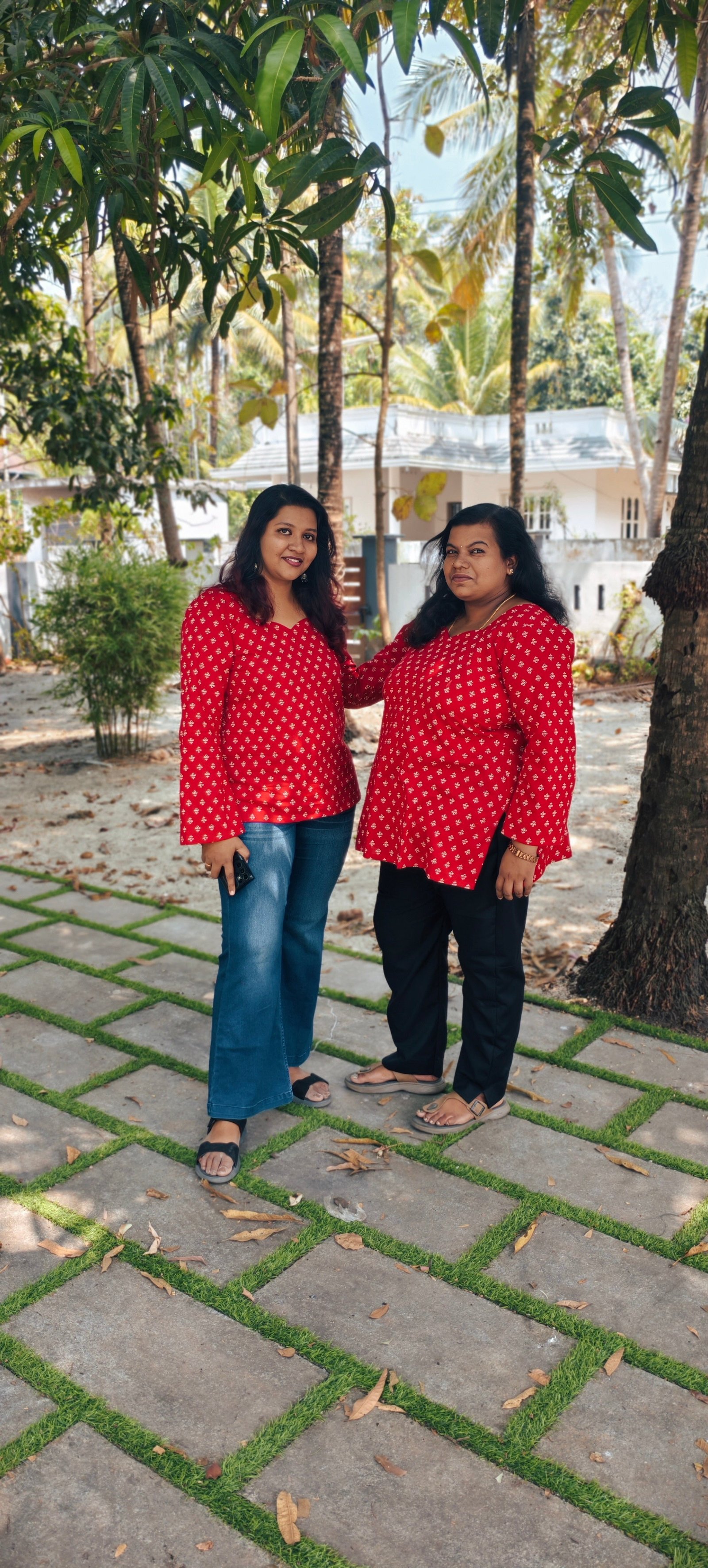 Mithra Red Pure Cotton Short Kurti with Bell Sleeves