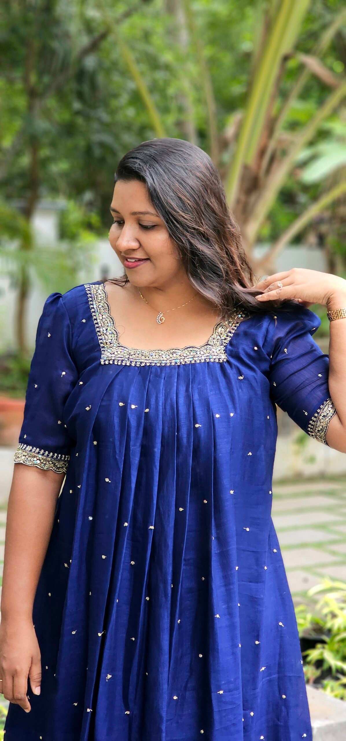 Moha Navy Blue Vichithra Silk Pleated Kurti
