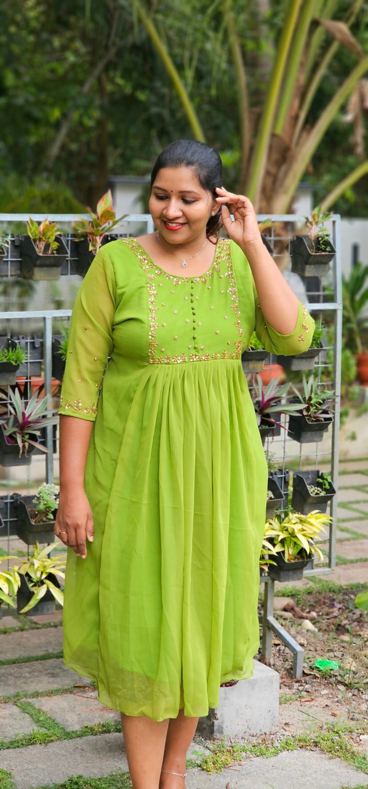 Sitaara Green georgette flair kurti