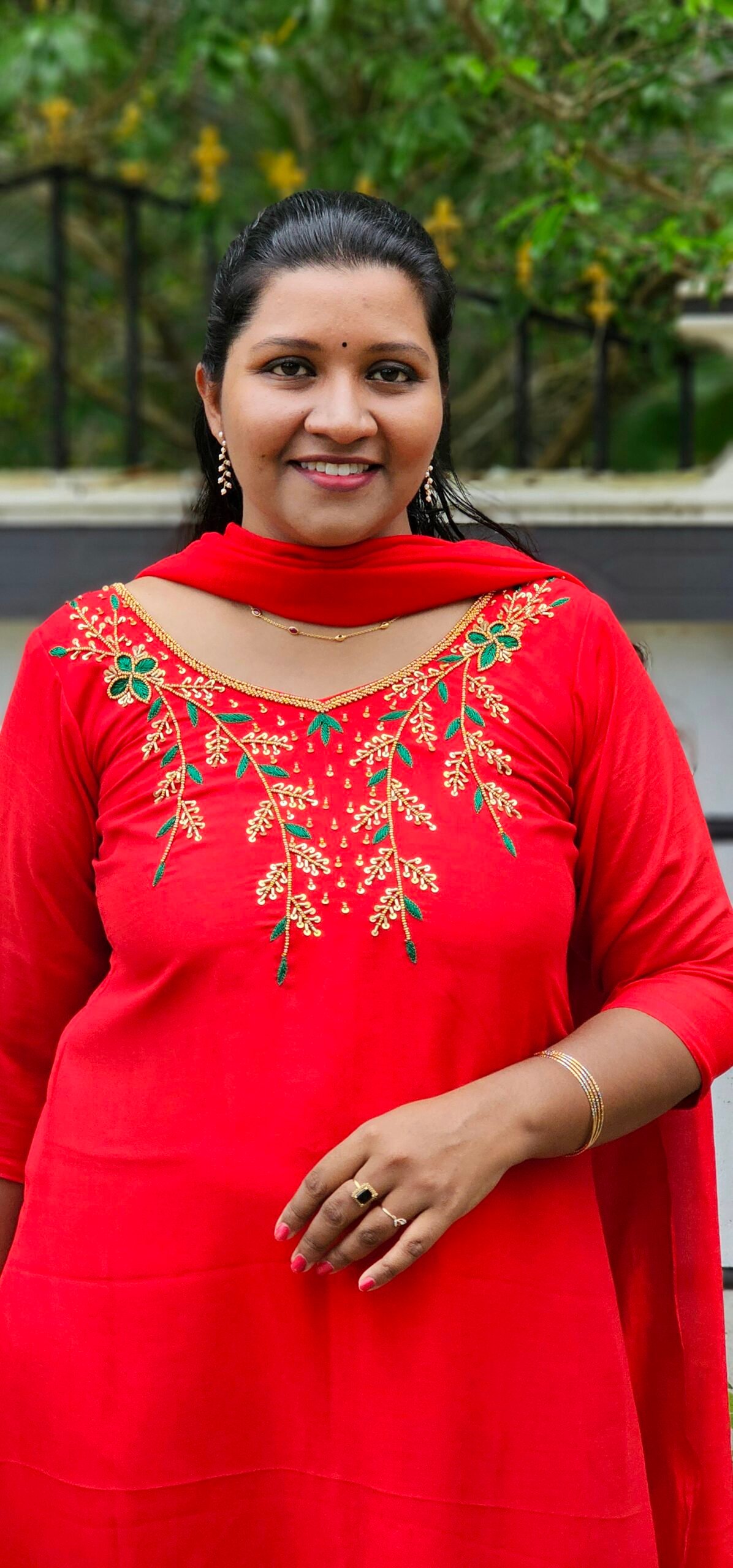 Vimora Thread & Handwork Red Vichithra Silk Top with Shawl
