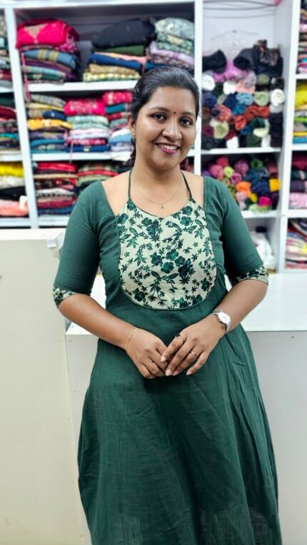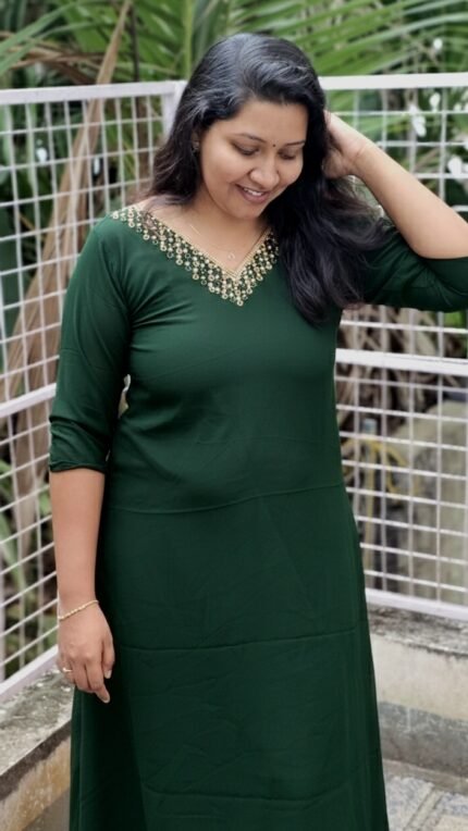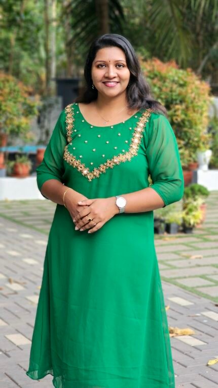 Aleena’ Thread Worked A-Line Georgette Top Green Colour