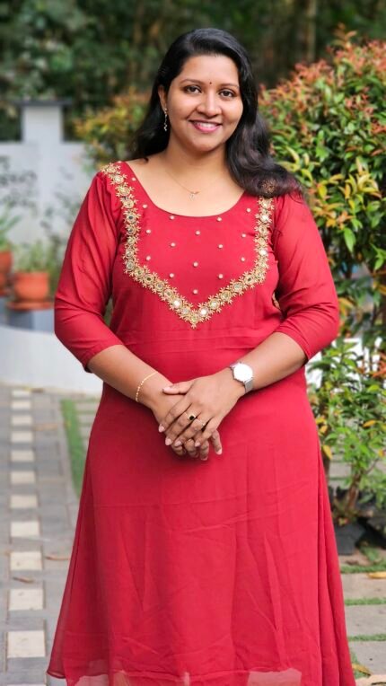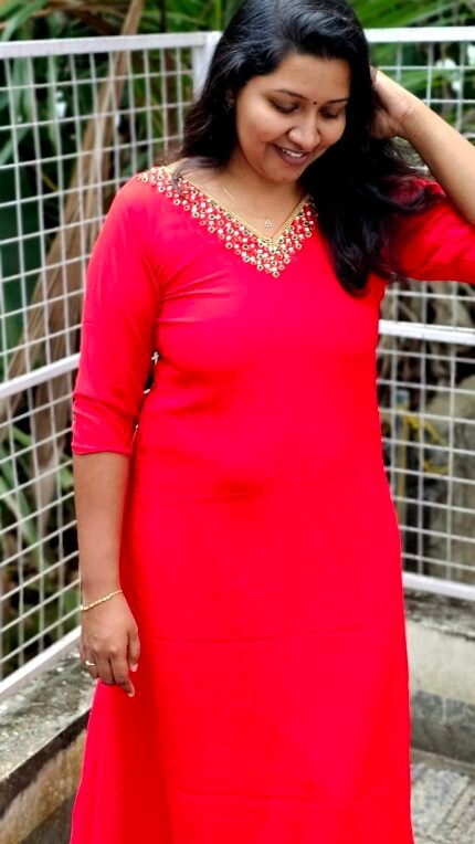 Aleena’ Thread Worked A-Line Georgette Top Red colour