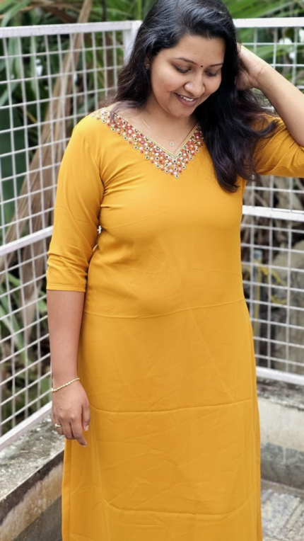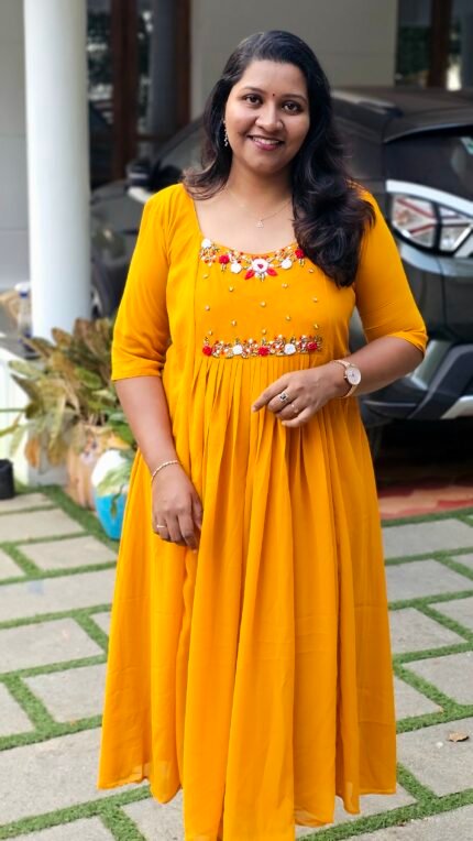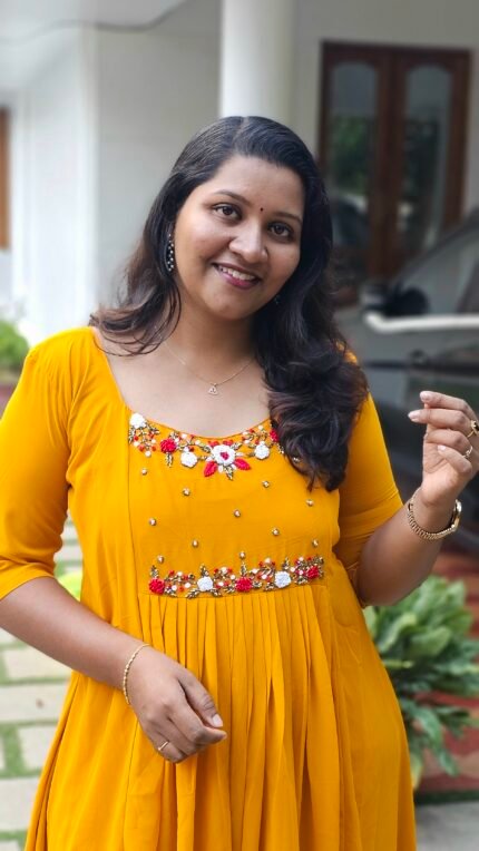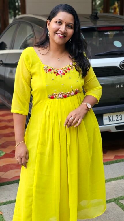 Grace Mustard Yellow Floral Handwork Pleat Kurti Small – 10XL ₹1199/-