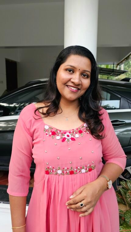 Grace Deep Blush Floral Handwork Pleat Kurti
