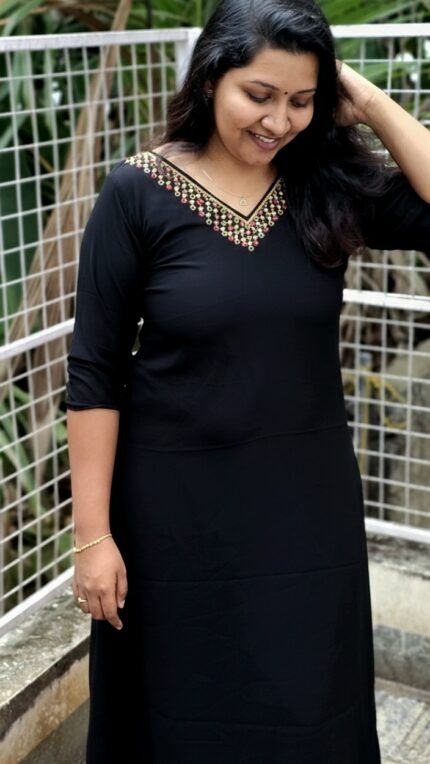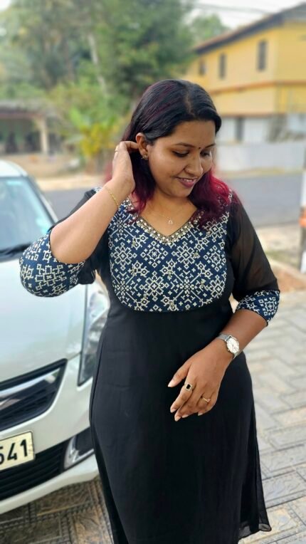 ‘Hima’ Black Georgette Mashru Yoke Kurti – Jhanvi Fashions