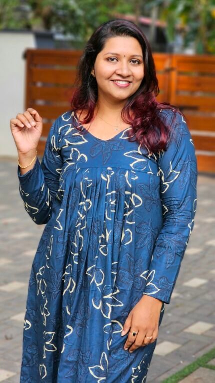 ‘Aira’ Teal Cotton Pleated Dress with Full Sleeves