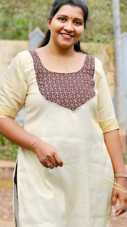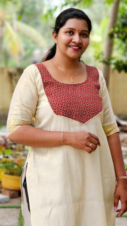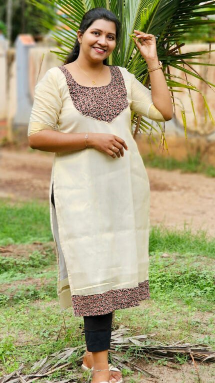 Offwhite Vichithra Silk Aline Top With Ajrakh Yoke