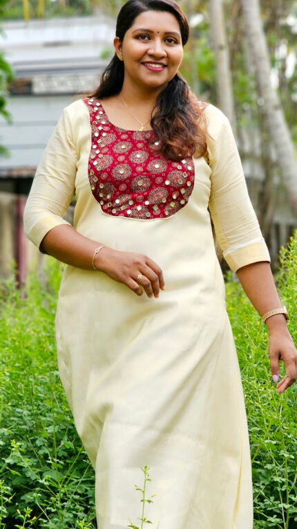 Golden Tissue Aline Top With Maroon Ajrakh Mirror Yoke