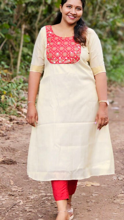 Golden Tissue Aline Top With Red Ajrakh Mirror Yoke