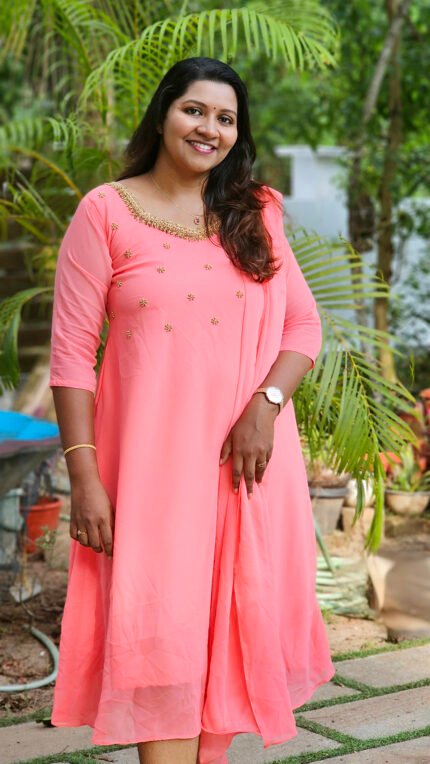 Peach Georgette Aline Peter Pan Neck Handworked Top