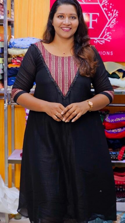 Black Vichithra Silk Ajrakh Yoke Aline Top