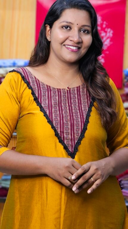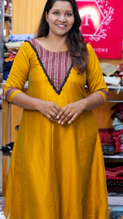 Mustard Yellow Vichithra Silk Ajrakh Yoke Aline Top