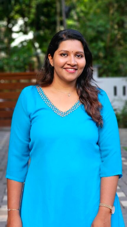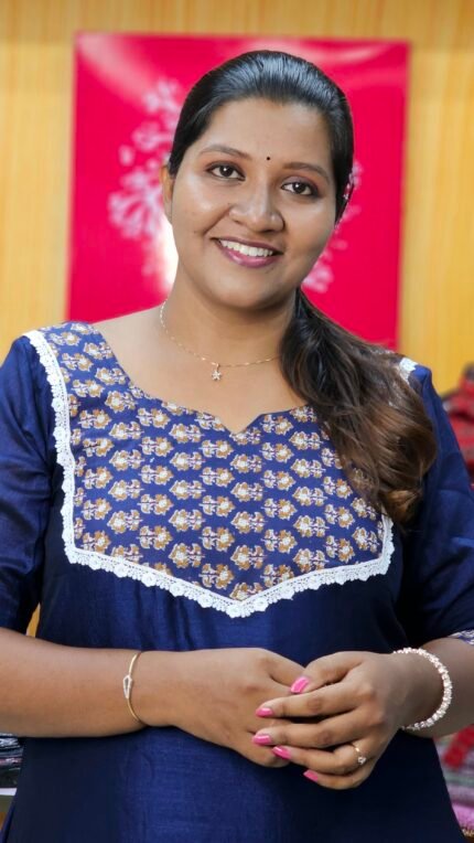 Blue Vichithra Silk Aline Top With Ajrakh Yoke