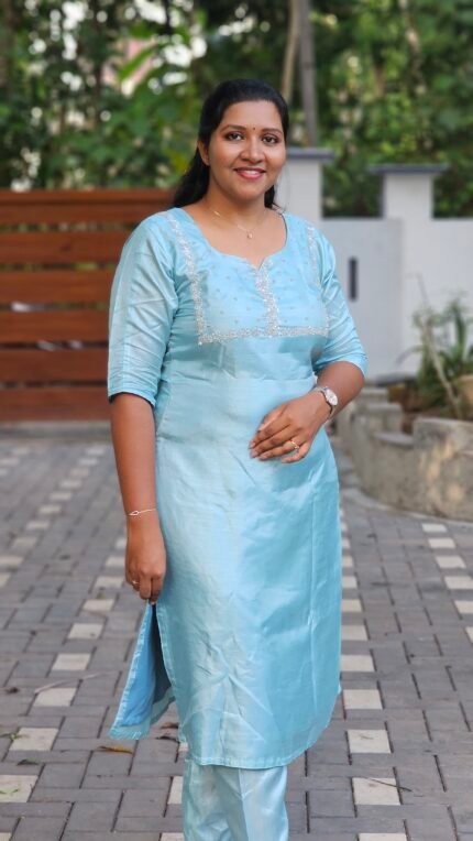 Zoya Sky Blue daily wear slitted kurti Size upto 5XL