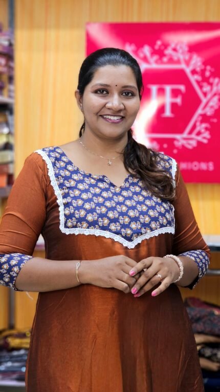Rust Orange Vichithra Silk Aline Top With Ajrakh Yoke